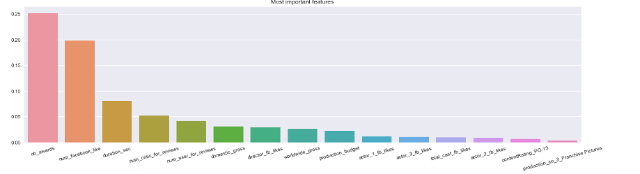 Machine Learning to predict the IMDB score with the meaningful variables. Using a Random Forest algorithm (500 estimators).