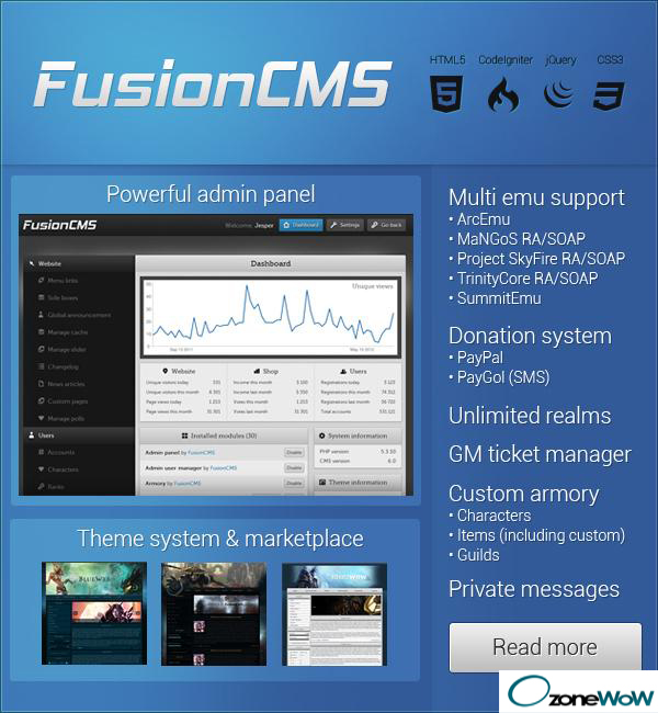 FusionCMS 6.2.1 latest retail version. It doesn't need serial to install and use. Containing all updates from 6.1.7 to 6.2.1 More information and items at: ZoneWoW.com Desch
