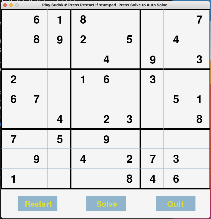PLAY THE GAME HERE: https://repl.it/@jamynair/SudokuGameGUI-1#README