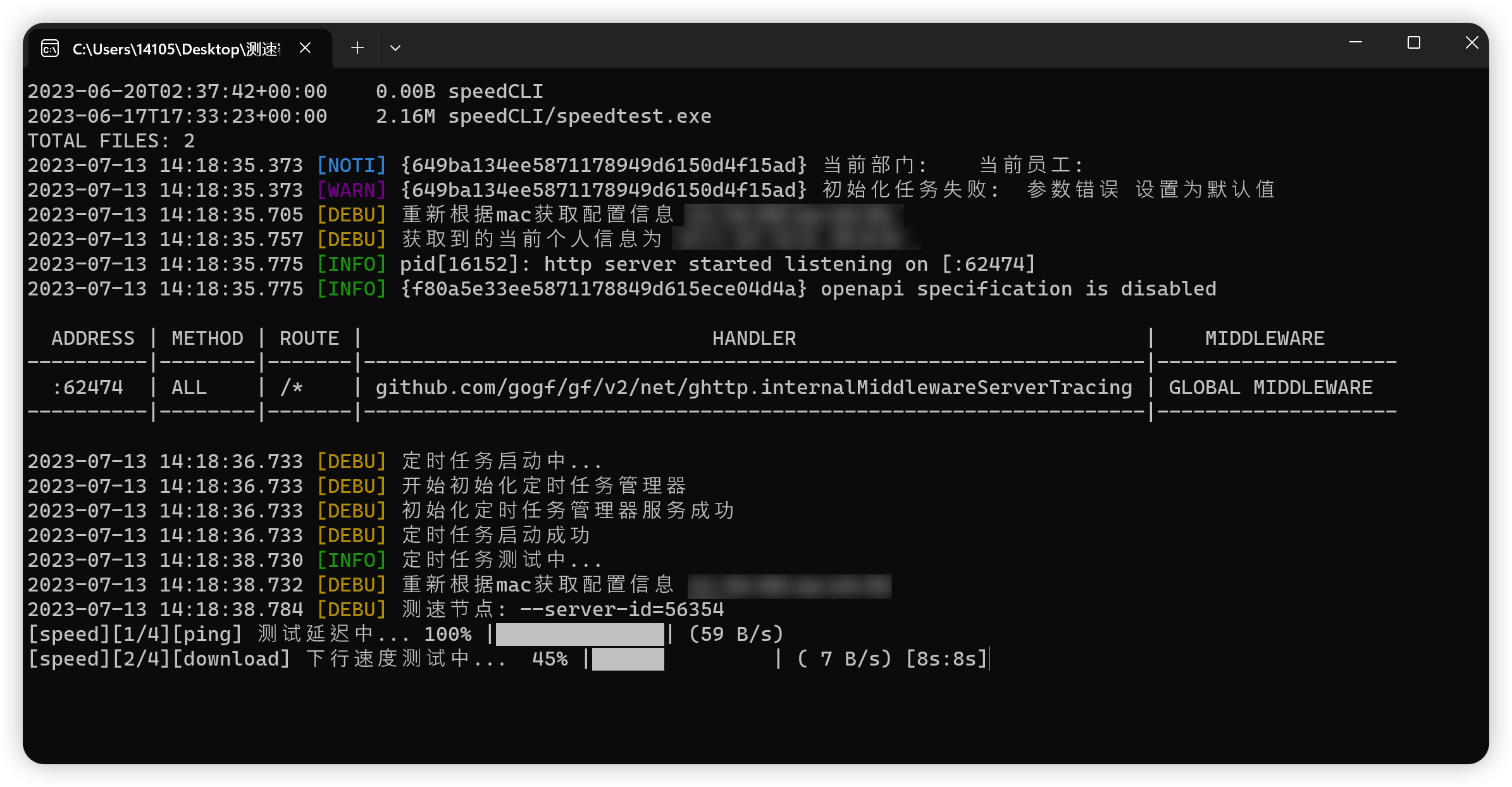 KES定时测速客户端 1. 项目介绍 本项目是一个基于Speed CLI的KES定时测速客户端,可以在指定时间段内定时测速并将测速结果发送到后端进行数据汇总。 2. 项目开发 安装GF CLI工具 go mod tidy gf run main.go --department=IT --name=KhalilFong 3. 项目部署 gf build main.go