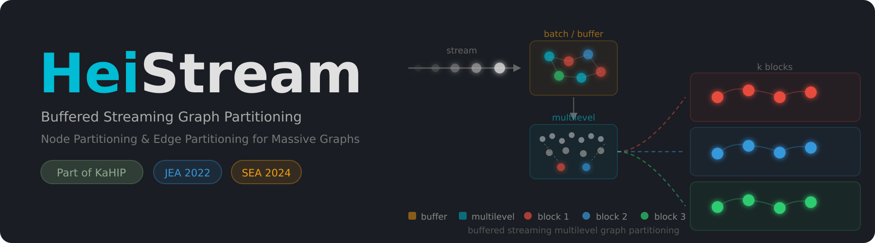 HeiStream is a buffered streaming algorithm for graph partitioning and edge partitioning of massive graphs using little memory, combining multilevel methods with a streaming computational model. Part of the KaHIP organization.