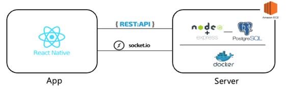 백엔드(Server) : Node.js(TypeScript), Express, Sequelize, Postgresql, Docker, Socket.io