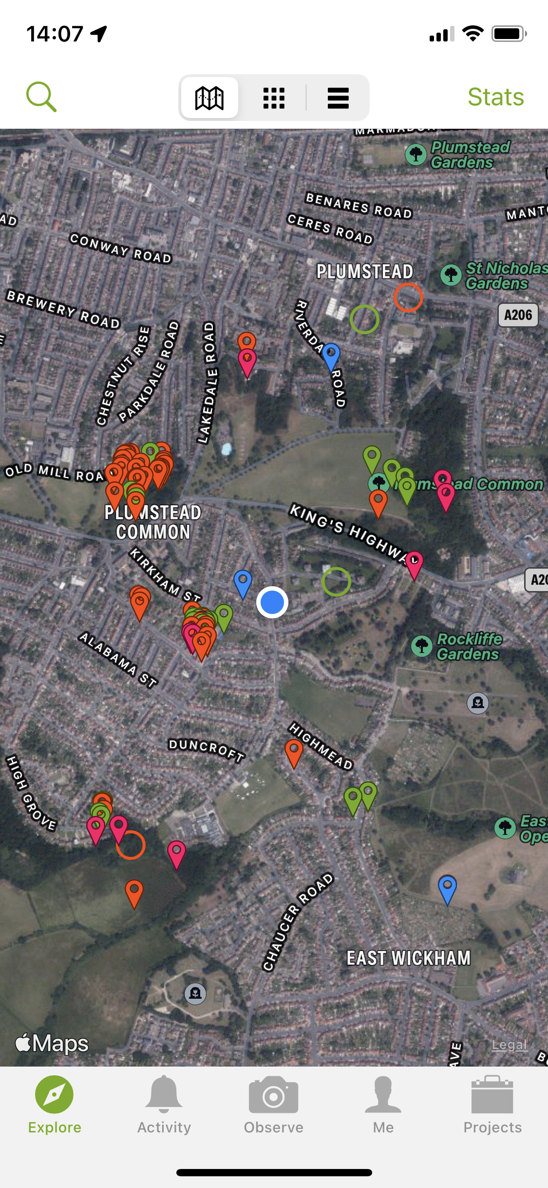 In comparison to iNaturalist, the home page provides a user enriched experience, showing the user an image and name of the plant. Providing the user with a modern design which they would be more familiar with than a map pin.