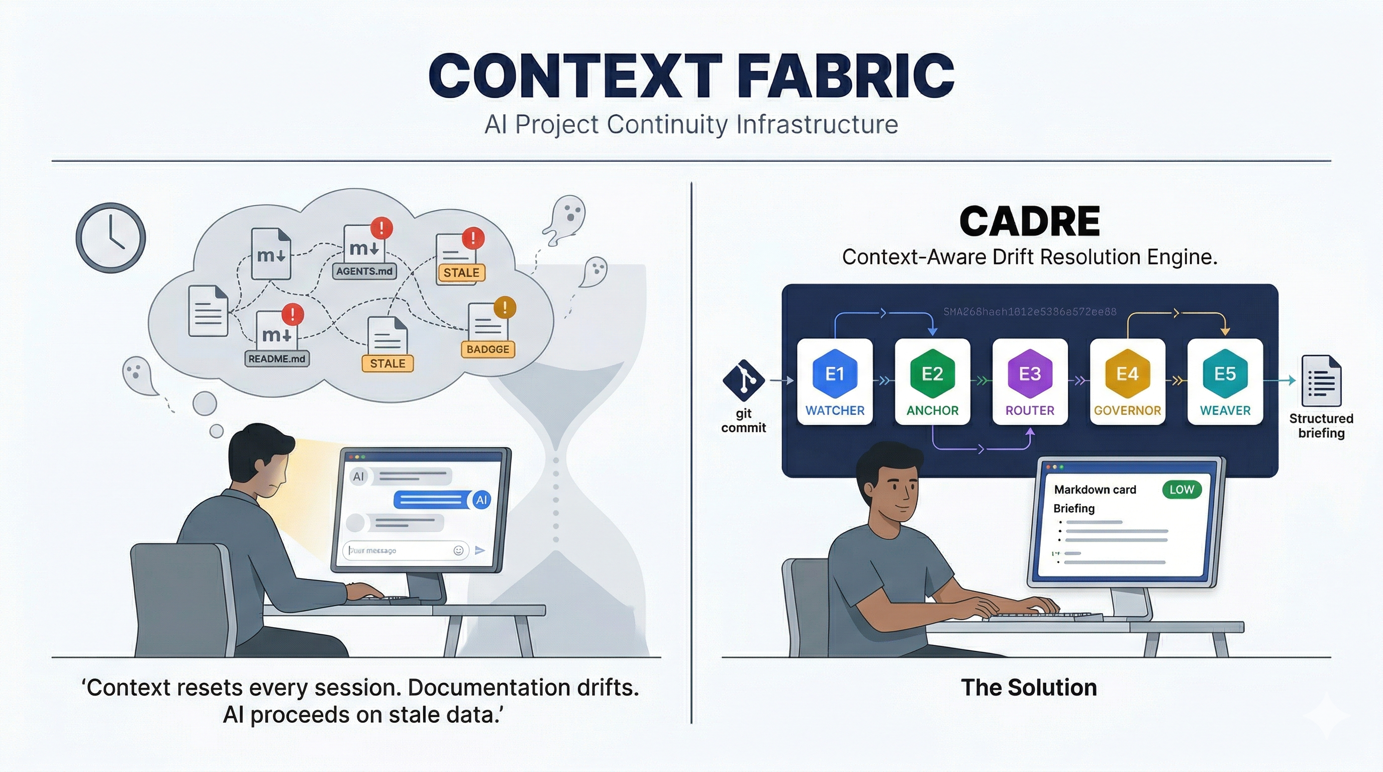 Context Fabric is powered by CADRE, a five-engine internal architecture. Every engine solves a specific, documented failure mode observed in real developer workflows.