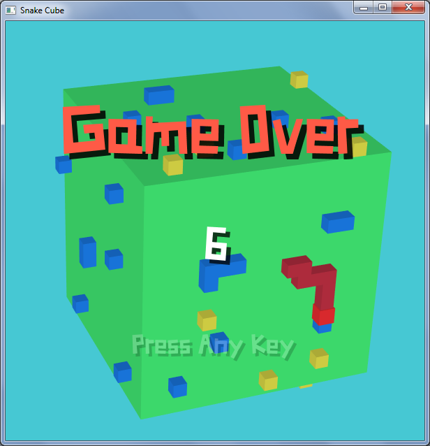 A 3D variation of the classical snake game, But the snake moves on the faces of the cube. When the snake touches edges of the cube, The cube will rotate to the face which the snake comes.
