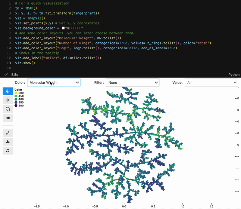 viz.add_color_layout("Molecular Weight", mw.tolist(), categorical=False)