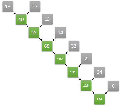 // sum two elements into where they belong