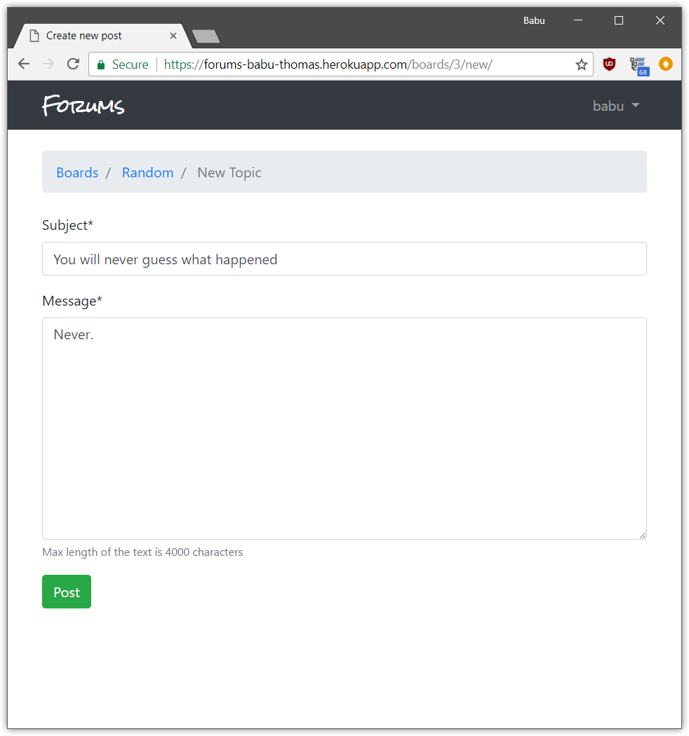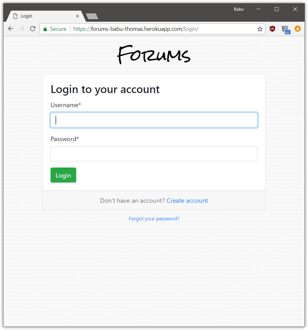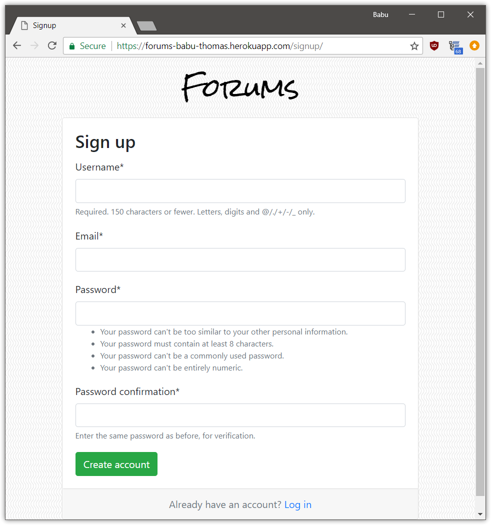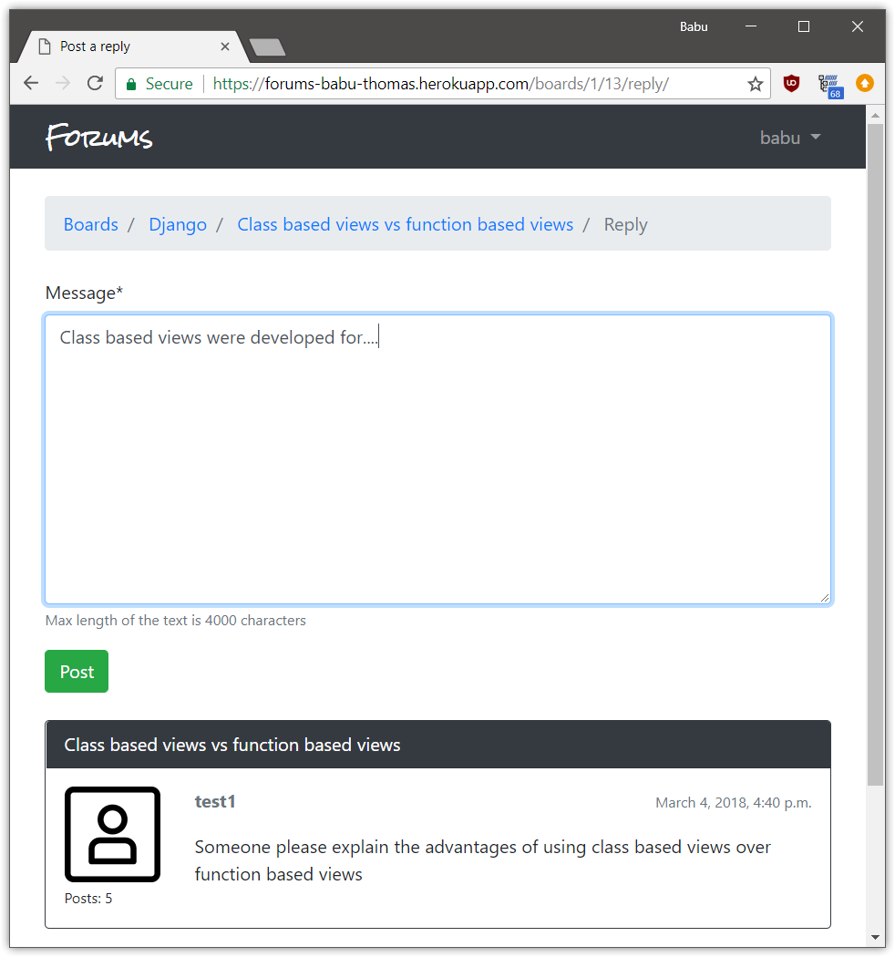 A discussion forum site made using Django. Different boards for different topics are present. Users can sign up, post topics and reply to different topics.