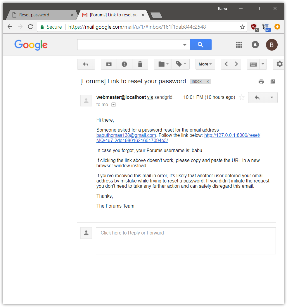 | Password reset mail |