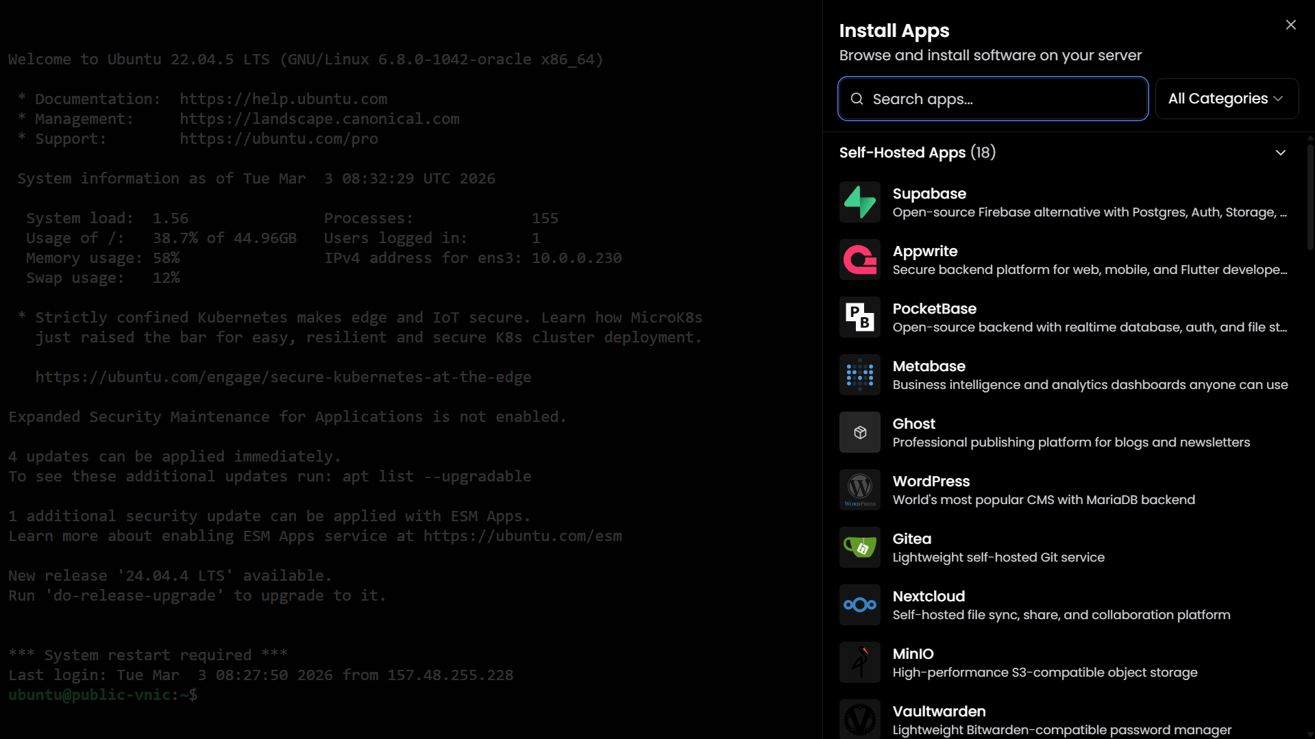 App Catalog - Deploy popular self-hosted applications with a single click: