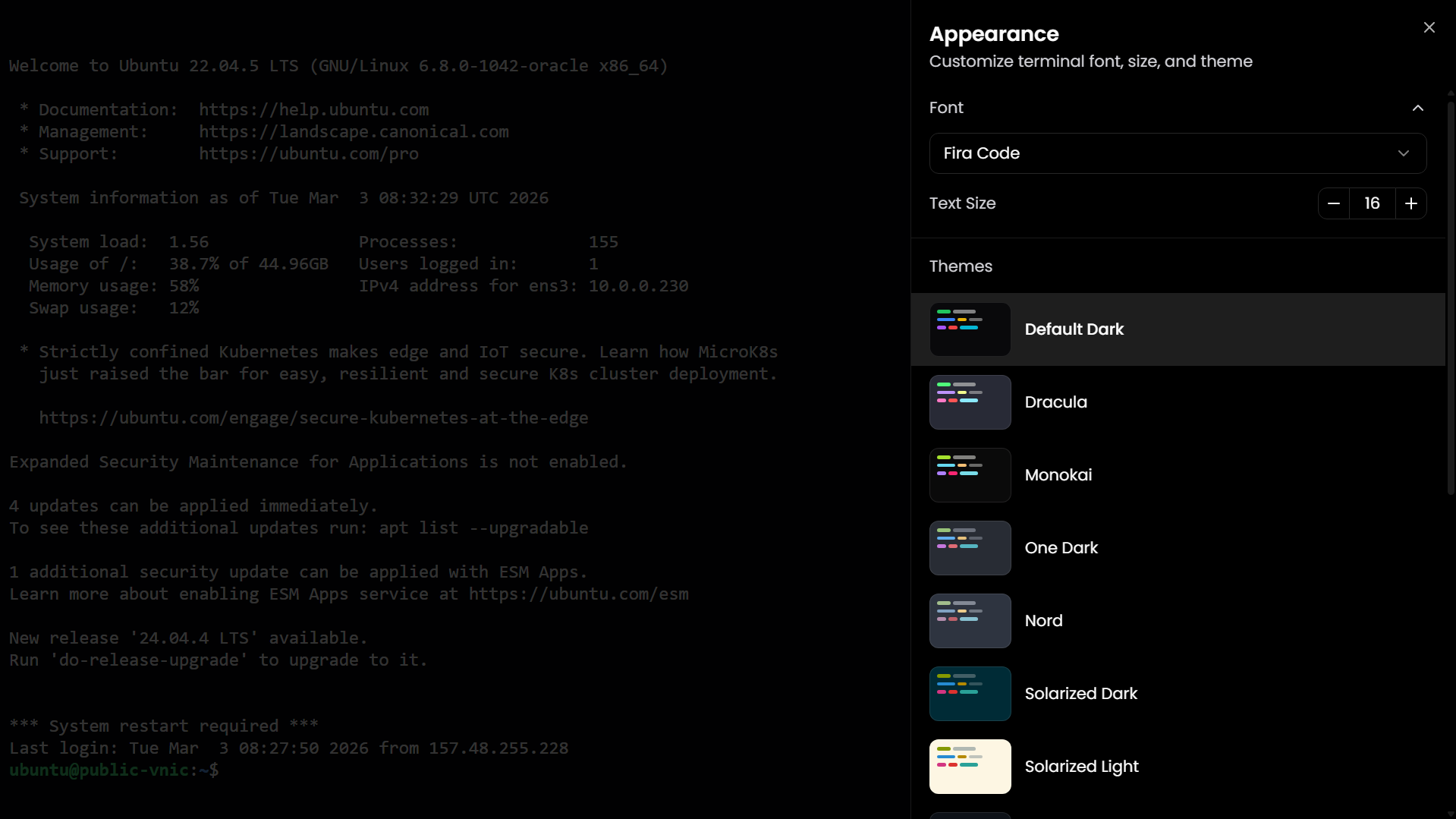- ๐ฆ All-in-One: Terminal, files, monitoring, storage, and desktop in one place