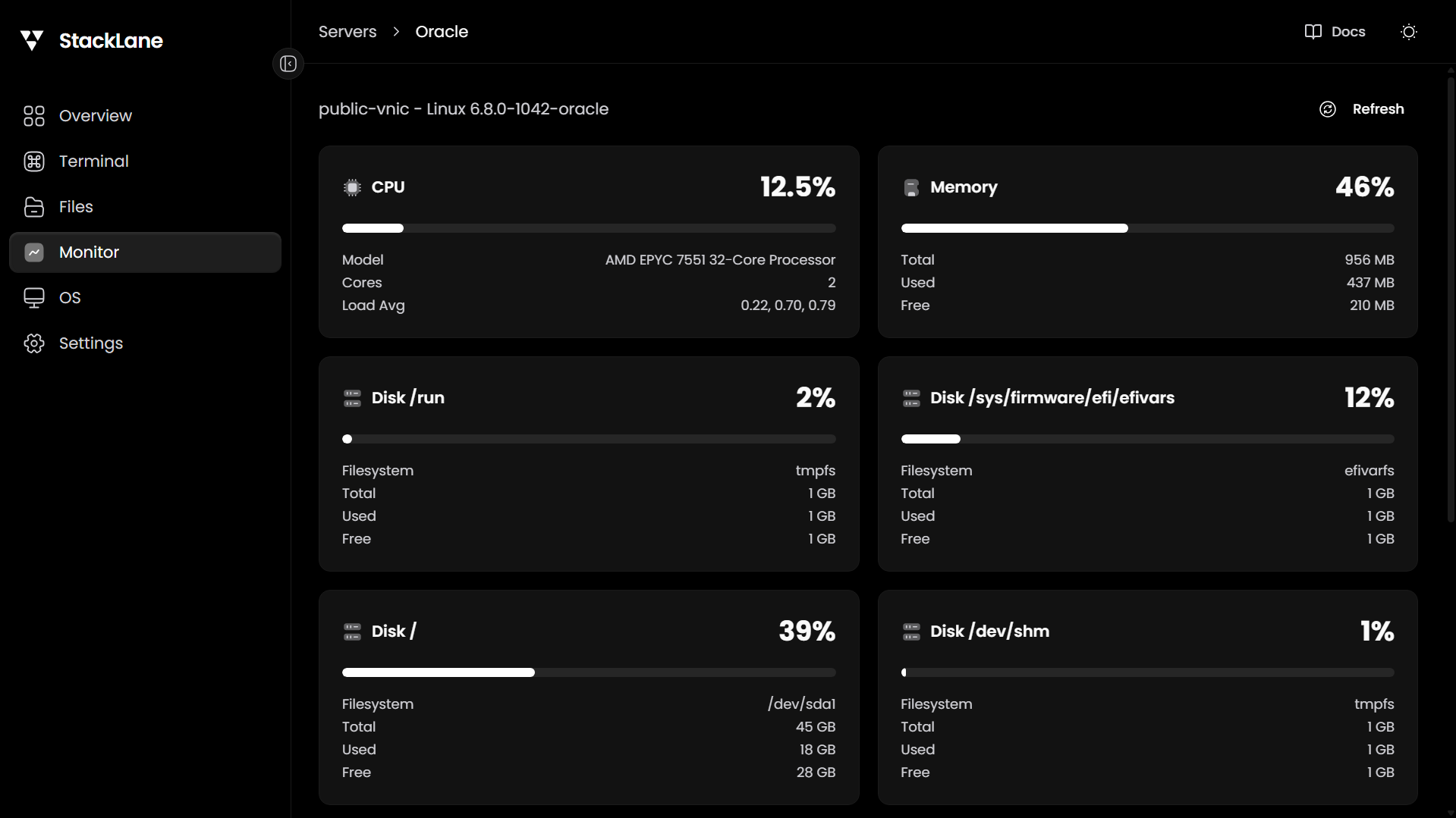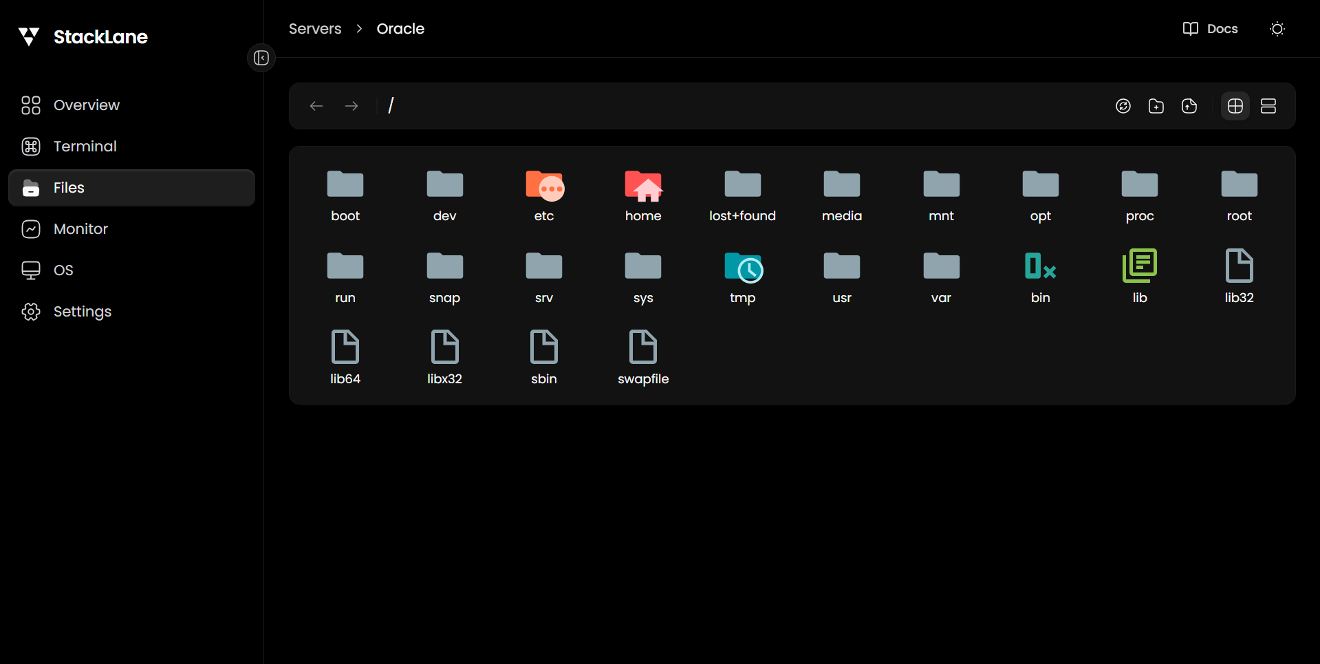 StackLane transforms how you interact with your remote servers by providing a powerful browser-based interface that combines terminal access, file management, performance monitoring, cloud storage integration, and remote desktop capabilitiesโall in one seamless application. No more juggling multiple tools and terminal windows.
