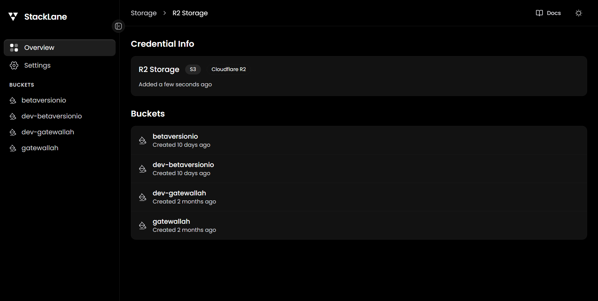 Seamlessly integrate and manage S3-compatible storage buckets from multiple providers. Upload, download, and organize your cloud files without leaving StackLane.