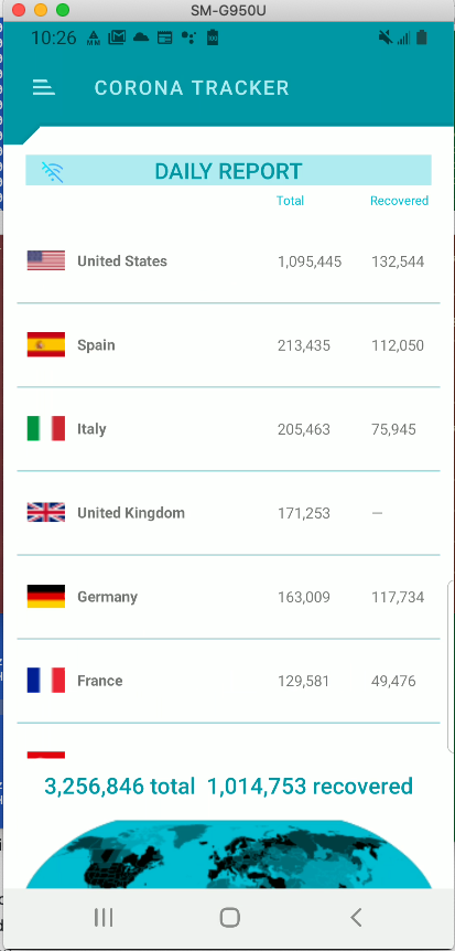 LiveData detects a change. Covid data is as up to date as possible, but may change suddenly.