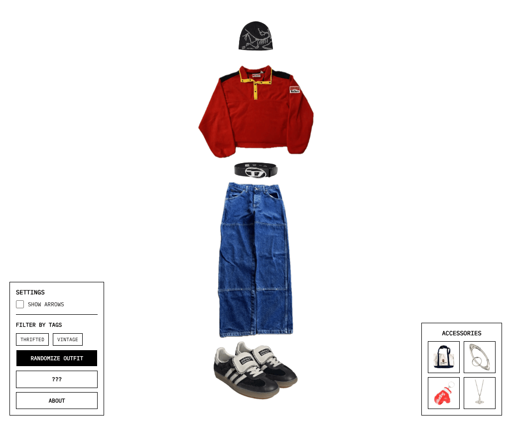 This is a website I created for indexing a selection of my clothes. It offers the ability to randomize the clothes everyday, which lets me get ready for school faster.
