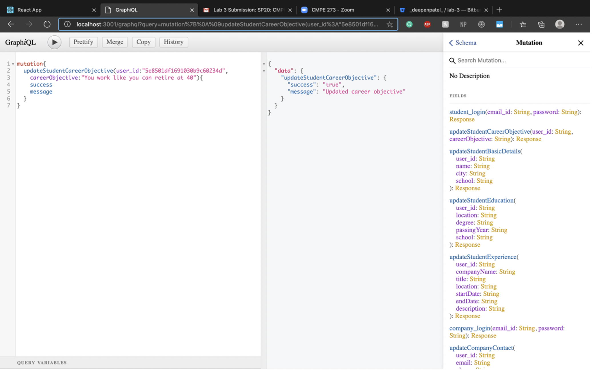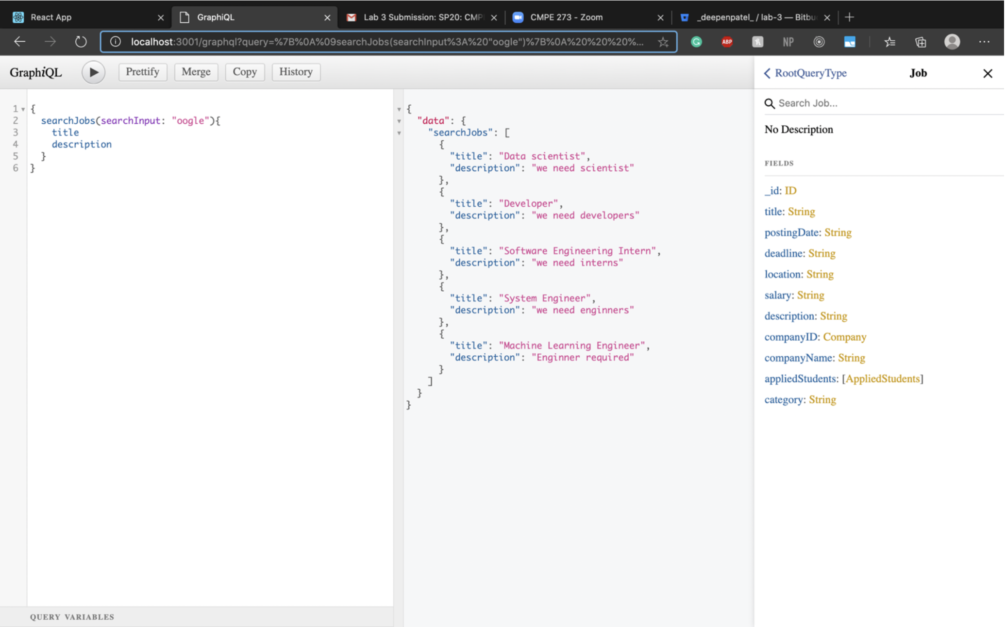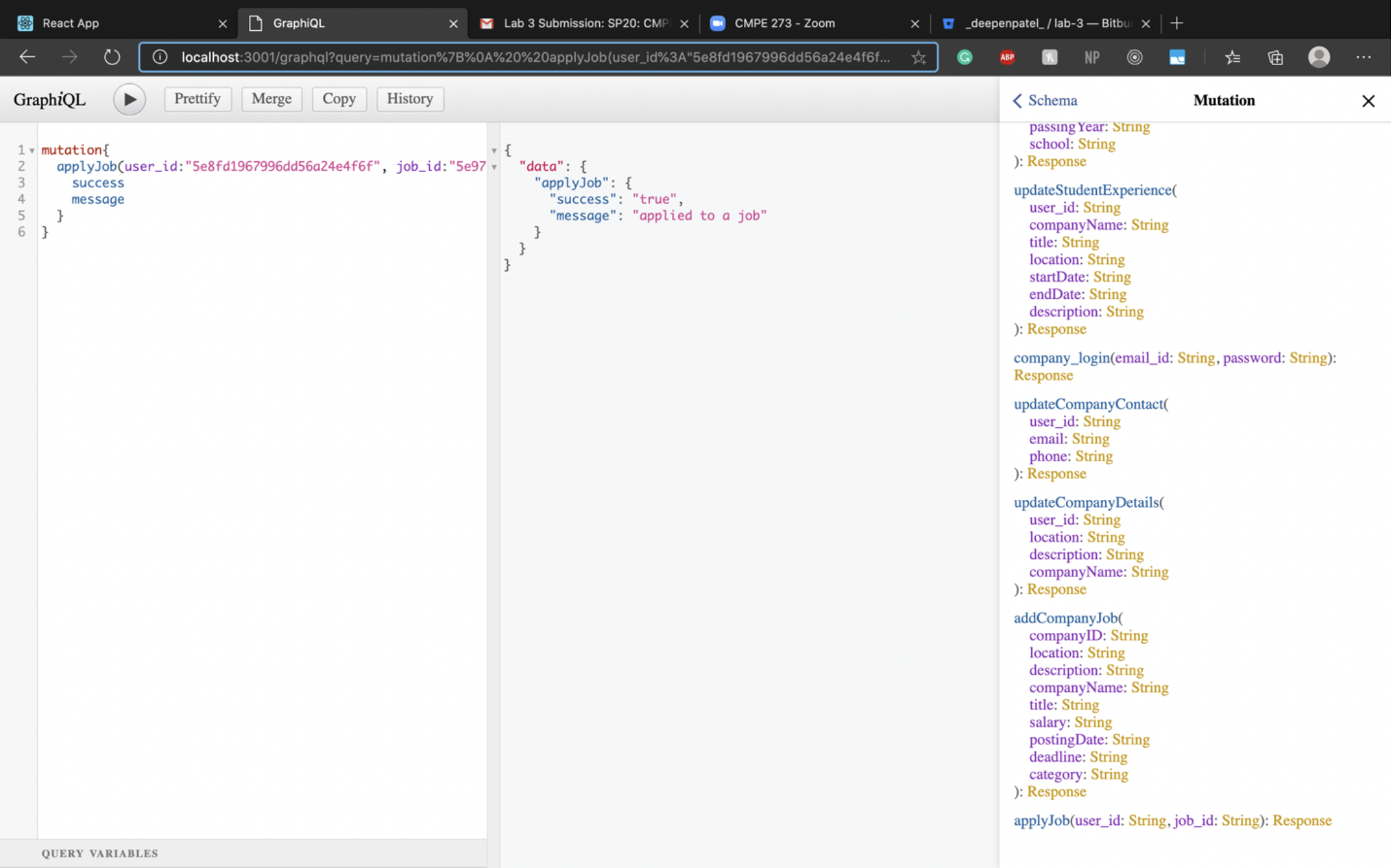 In this project I have tried to replicate the Handshake (joinhandshake.com) where the services offered by the Handshake for student and company are achieved using GraphQL(Data query and manipulation language).