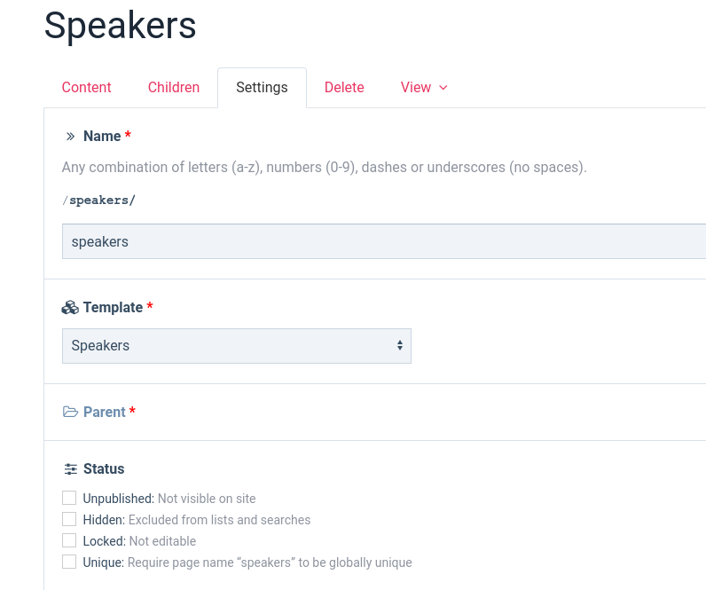 The default entries for posters and talks can be deleted in the page tree by selecting and then deleting them.