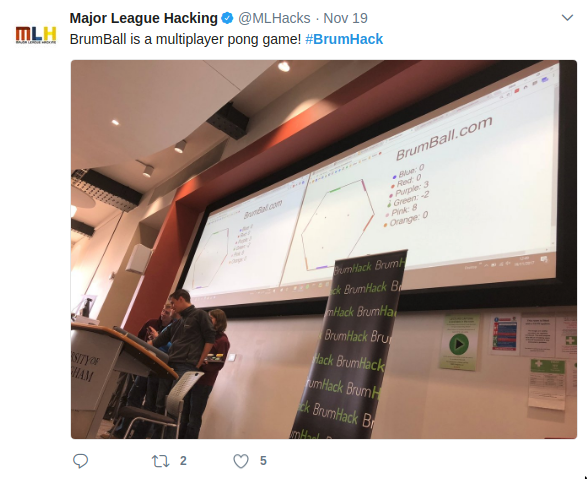 Brumball was developed during Brumhack 7.0, a 24hr hackathon that was held in November 2017. It was developed by the Dysfunctional Programmers, a team of computer science students from University of Southampton.