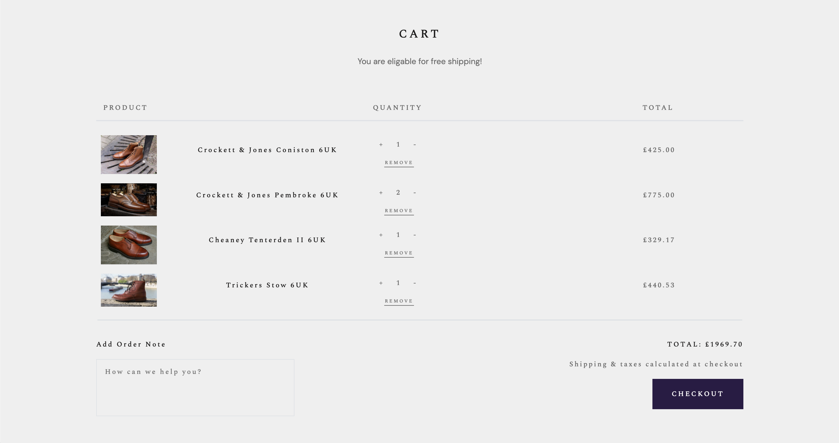 - Create a function where if the quantity of shoes is zero, dynamically remove the shoe from the cart.