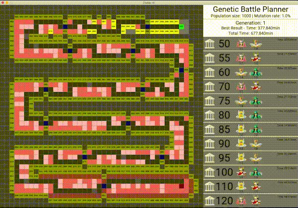 As soon as the shortest path is found, the genetic algorithm starts executing in order to find the best combination of knights to fight in each temple.