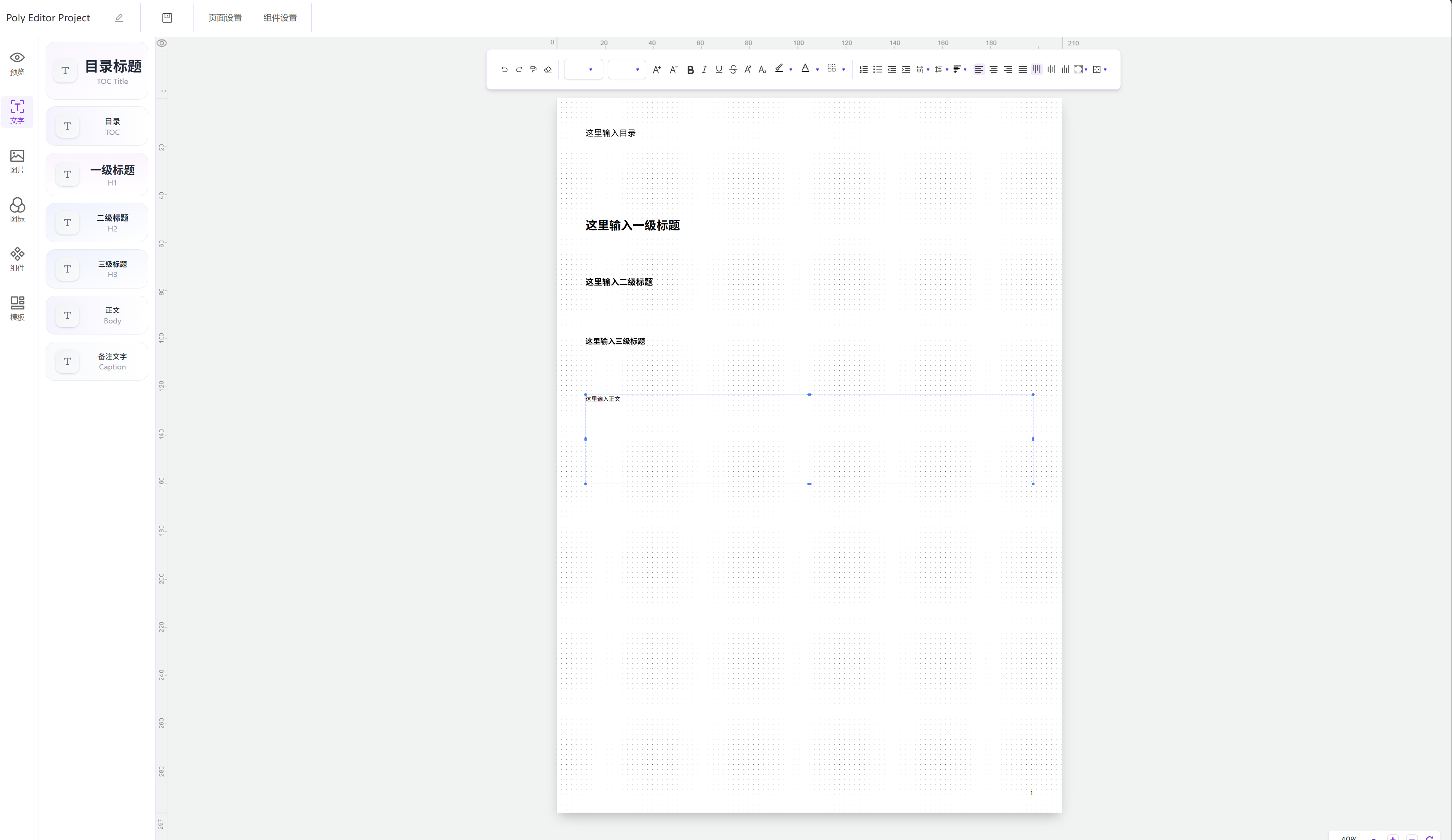 - 多页面文档编辑:支持创建、管理多个页面,每个页面可以独立设置尺寸和样式