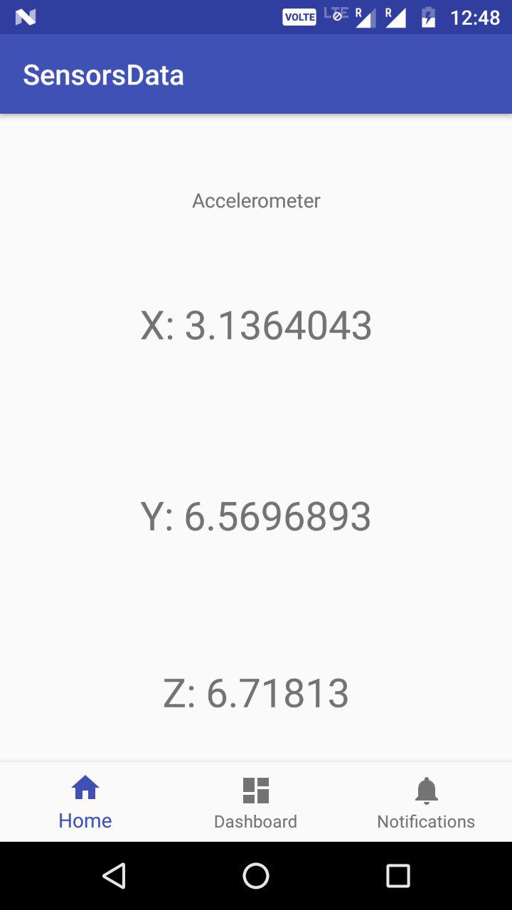 An application which reads and show accelerometer readings.