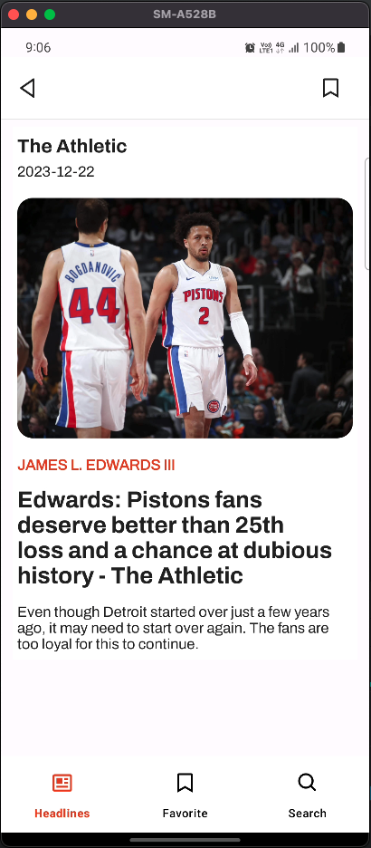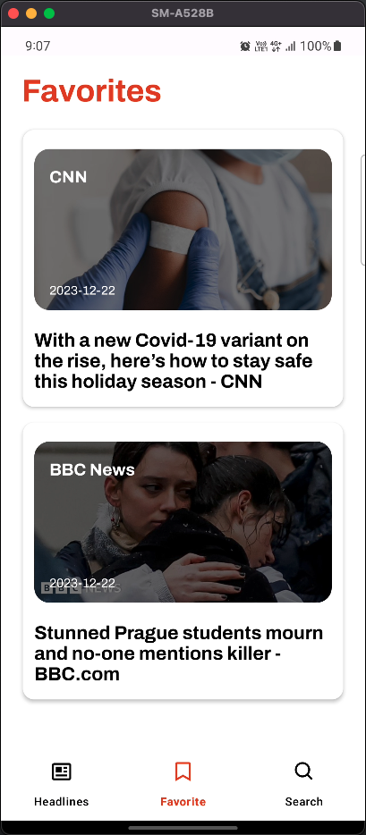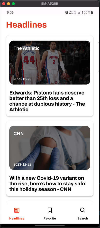 This application allows users to view top news headlines and perform news searches. Additionally, users can locally save their favorite news articles.