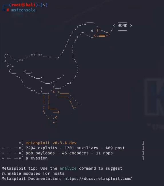 Launch msfconsole from terminal: