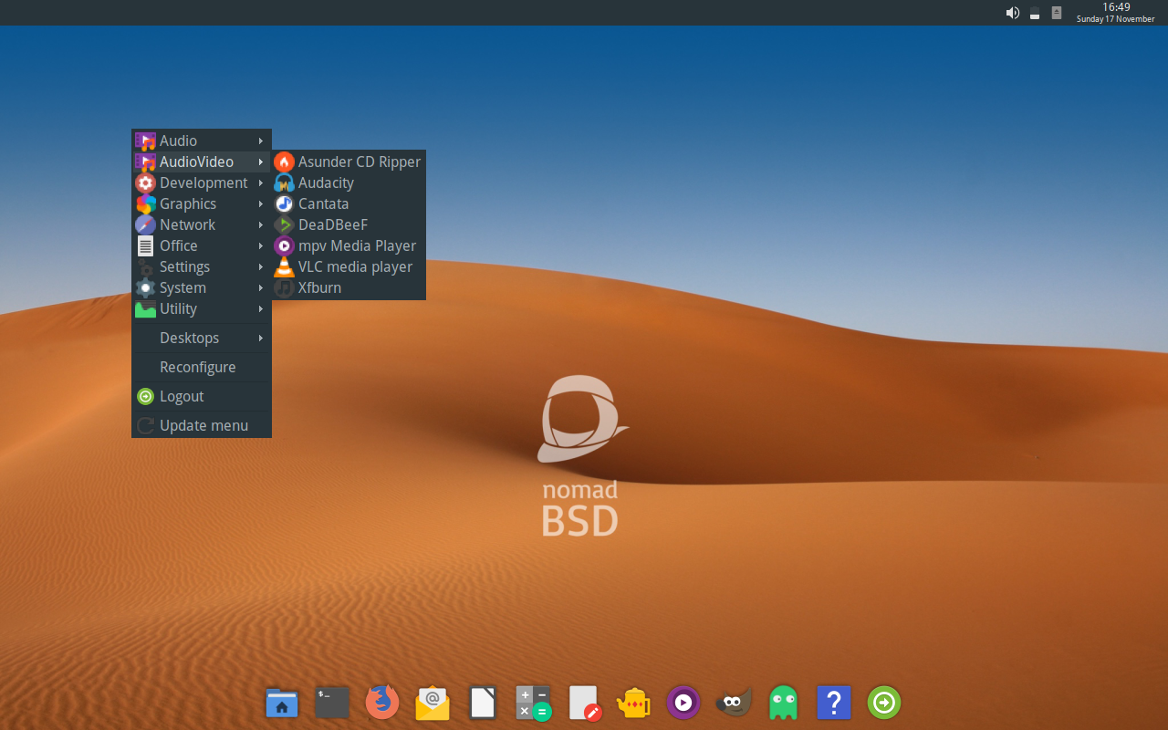 - A (amd64/i386) system with a 1.2GHz CPU and 1G of RAM should be able to run NomadBSD decently.