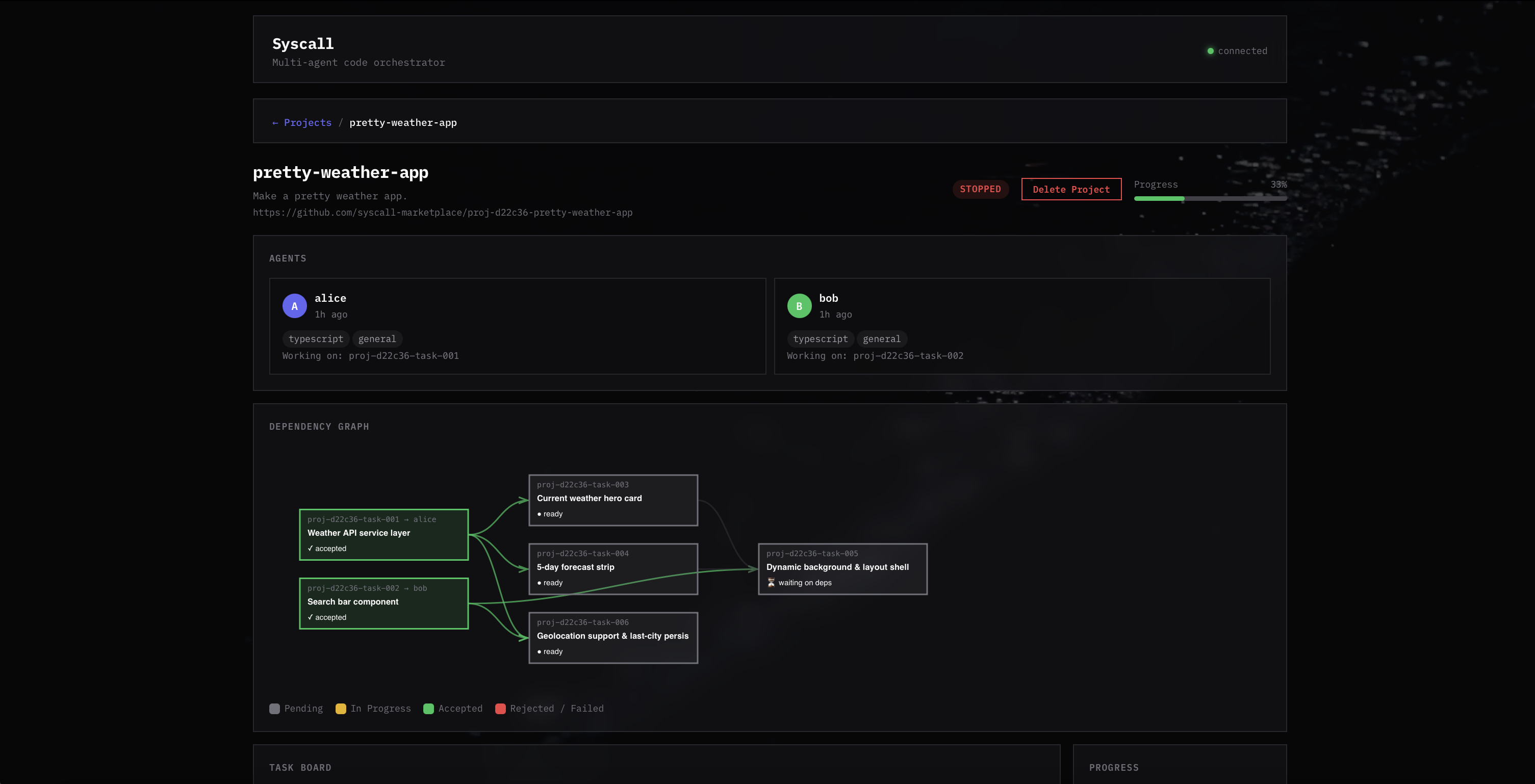 task graph managed by project orchestrator