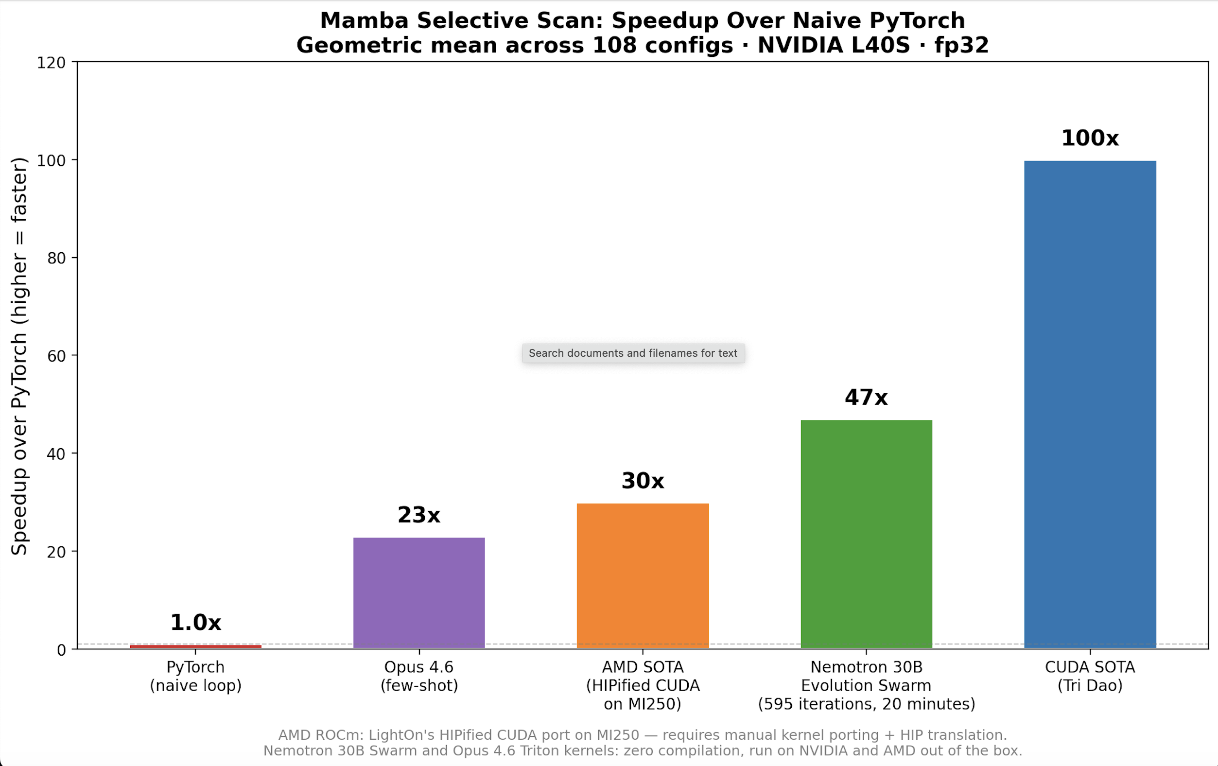Quantitative problems — optimizing GPU kernels, tuning numerical routines, squeezing out the last 10x on a CUDA function — require exhaustive search through a massive space of possible implementations. No human (and no single AI) can explore enough of that space alone.