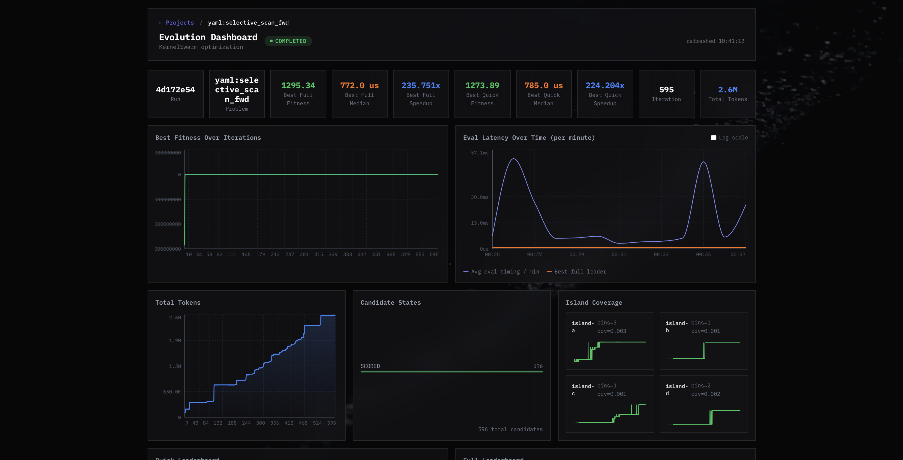 - Designed and implemented a 64-agent evolutionary search system distributed across multiple machines, with MAP-Elites, island migration, and a full build-validate-benchmark pipeline
