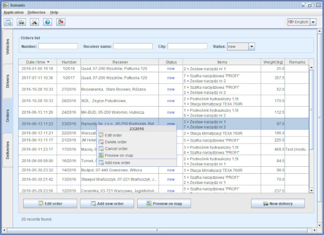 Program "Somado" umożliwia optymalizację dostaw towarów; wykorzystuje dane OpenStreetMap. Problem marszrutyzacji (VRP) rozwiązywany przy użyciu biblioteki JSprit. Wyświetlanie map przy użyciu biblioteki JXMapViewer2. Geokodowanie przy użyciu usługi OSM Nominatim, mapa podkładowa - wybrana usługa TMS. Baza danych SQLite + Spatialite. Dane przestrzenne są "rzutowane" na obiekty przy pomocy biblioteki JTS (zgodnie ze standardem OGC).