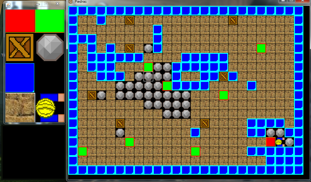 Piedras (stones) is a remake of a classic puzzle game: Sokoban.