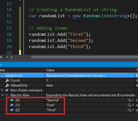 var randomList = new RandomList<int>{ 1, 2, 3, 4};