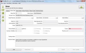 A database that keeps track of all your brews, recipes, costs, and includes some other handy tools for the home wine brewer.
