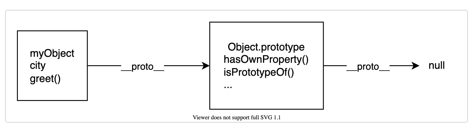 console.log(Object.getPrototypeOf(object1) === prototype1);An object's prototype object may also have a prototype object, which inherits methods and properties from, and so on. This is often referred to as a prototype chain, and explains why different objects have properties and methods defined on other objects available to them.