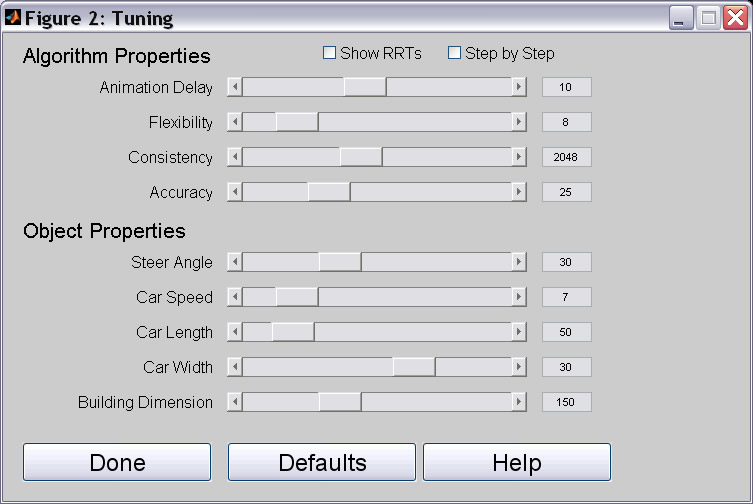 The machanism of RRTs can be clearly explained in step-by-step simulation. The animation shows how the RRT trees in constructed and grow. User can gain a true understanding on how RRT works by looking at the simulation.