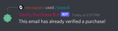 Discord bot that searches your PayPal transactions (by user entered email) and assigns a role if the purchase was verified.