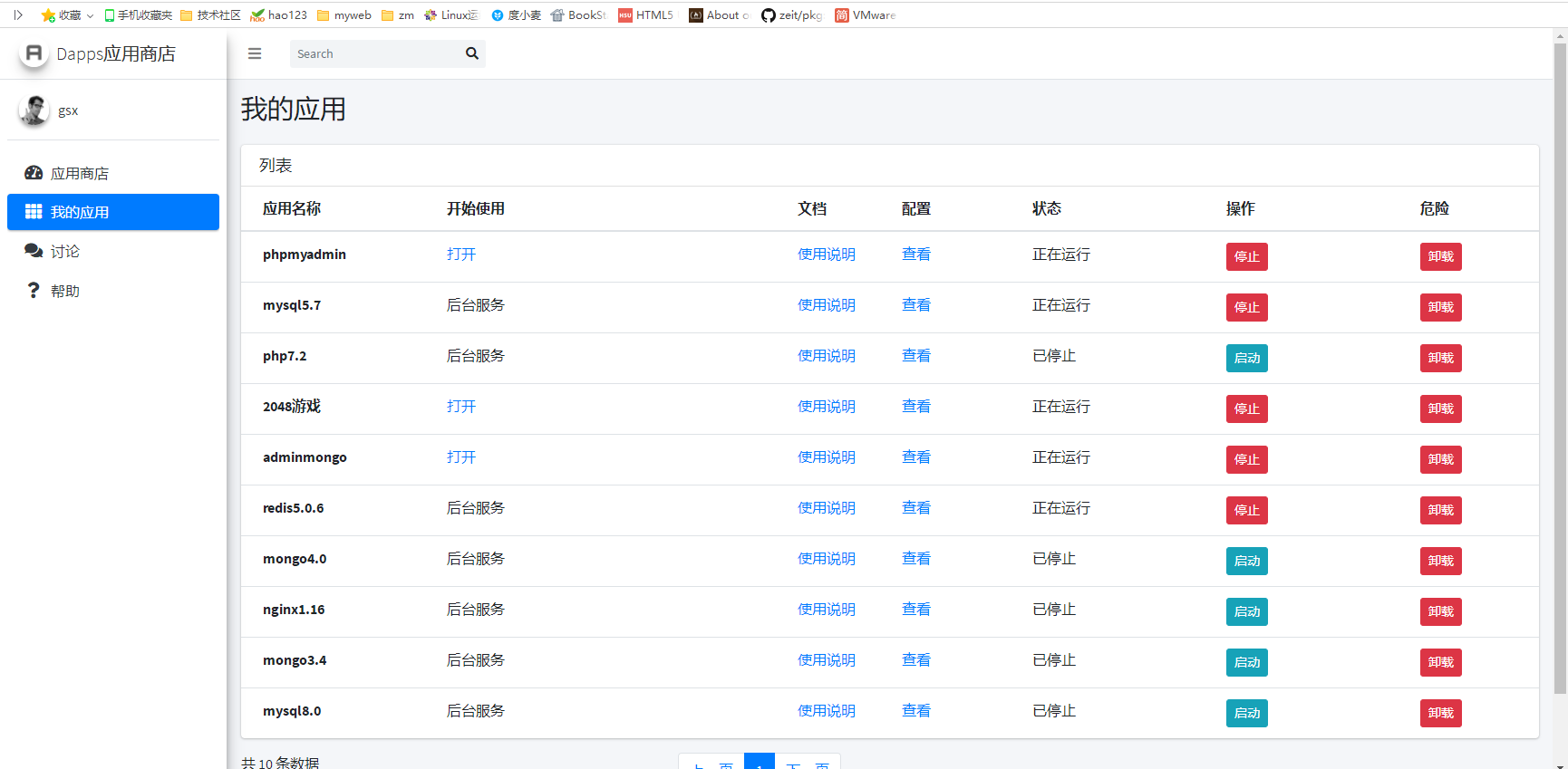 它是一个应用程序商店,包含丰富的软件,因为基于docker,使你本机电脑有云开发的效果。 一键安装程序;多版本共存,完善的使用说明,且不影响本机环境。 前端、服务端、运维、站长可以直接使用,效率提高非常多。普通用户亦可使用其中部分软件。