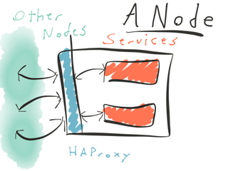In a Lighthouse setup, no node's application code is aware of the existence of other nodes, they talk to a local port handled by an instance of the load balancer which in turn routes traffice among the various known other nodes.