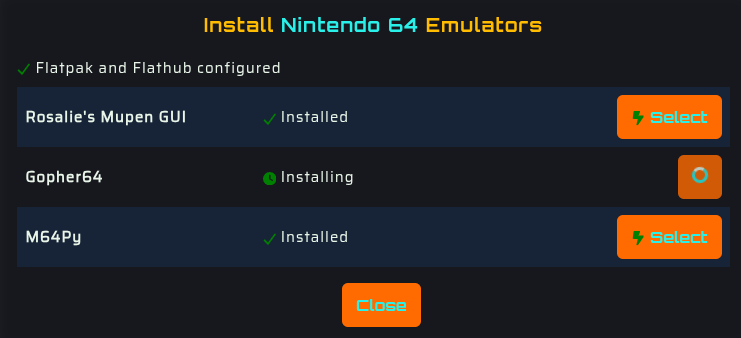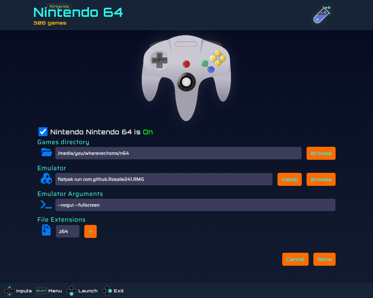 ⚠️ Note: Automatic emulator installation / selection is currently only available on Linux. On BSD, macOS and Windows, emulators must be installed manually. No biggie, the result is the same anyway: setup and forget.